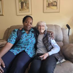 MODA resident Isabel du Plessis blow dries the hair of another resident, Elizabeth Andrews.