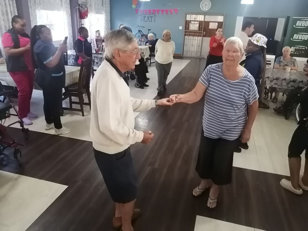 Care partner Lydia Pitsi dances with Errol Townsend.