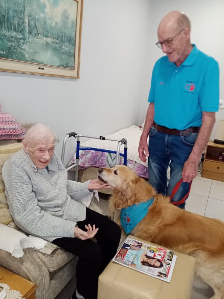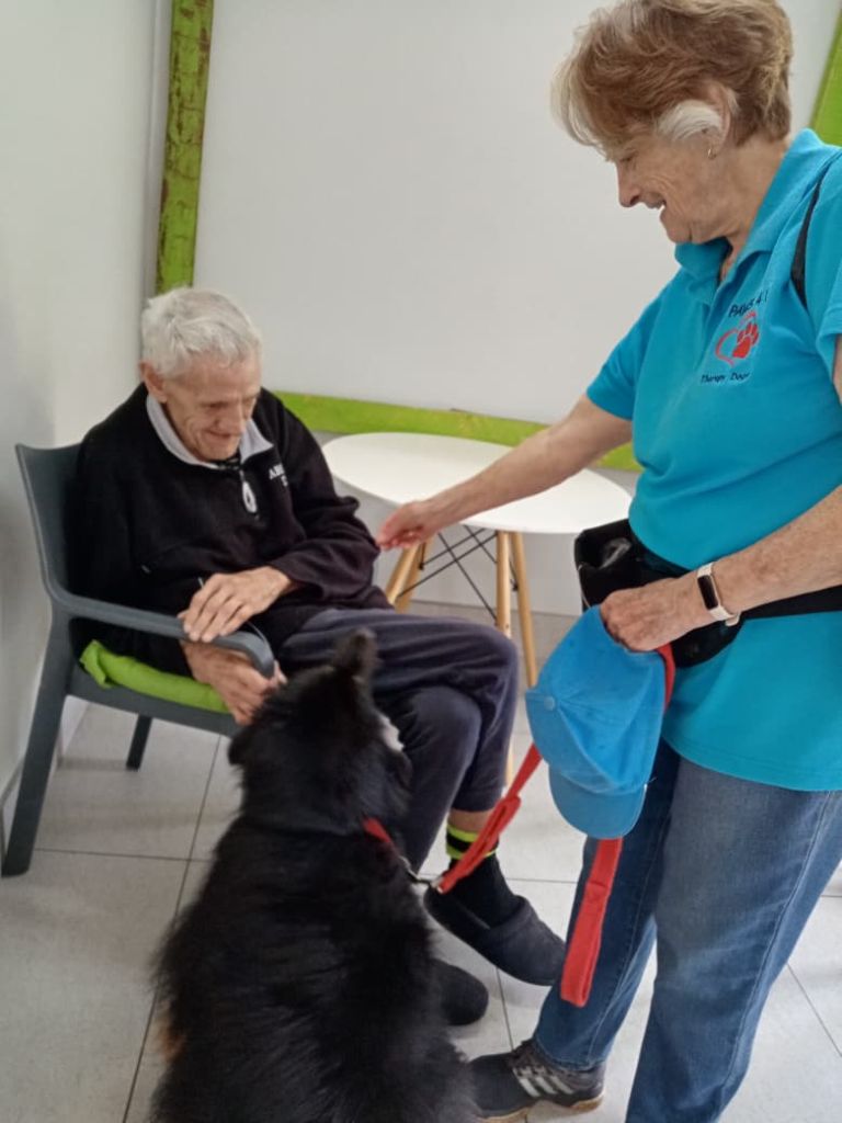 During the visits, the team moves around the centres, stopping by residents’ rooms, lounges and activity areas. The visits are casual and relaxed, much like spending time with familiar friends, giving residents the chance to interact, touch and enjoy the company of the dogs.