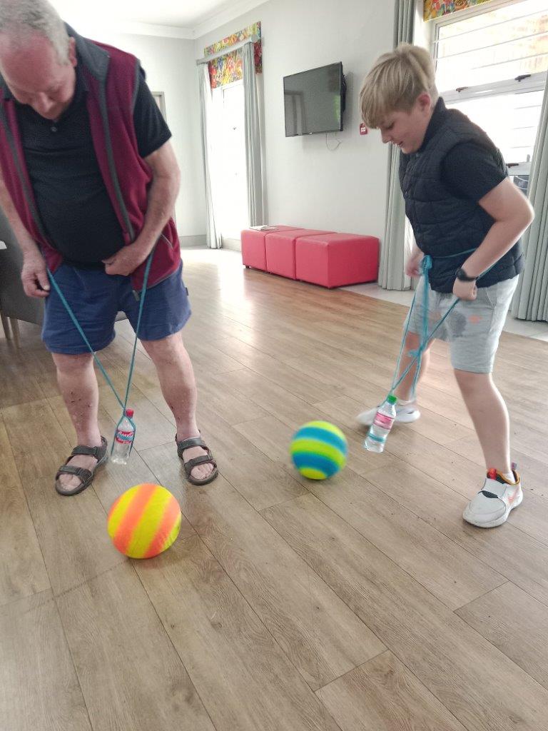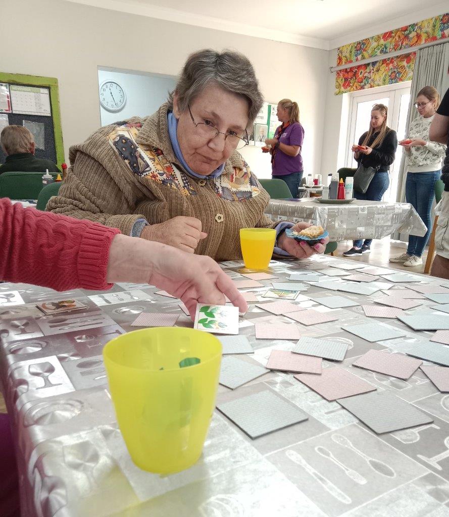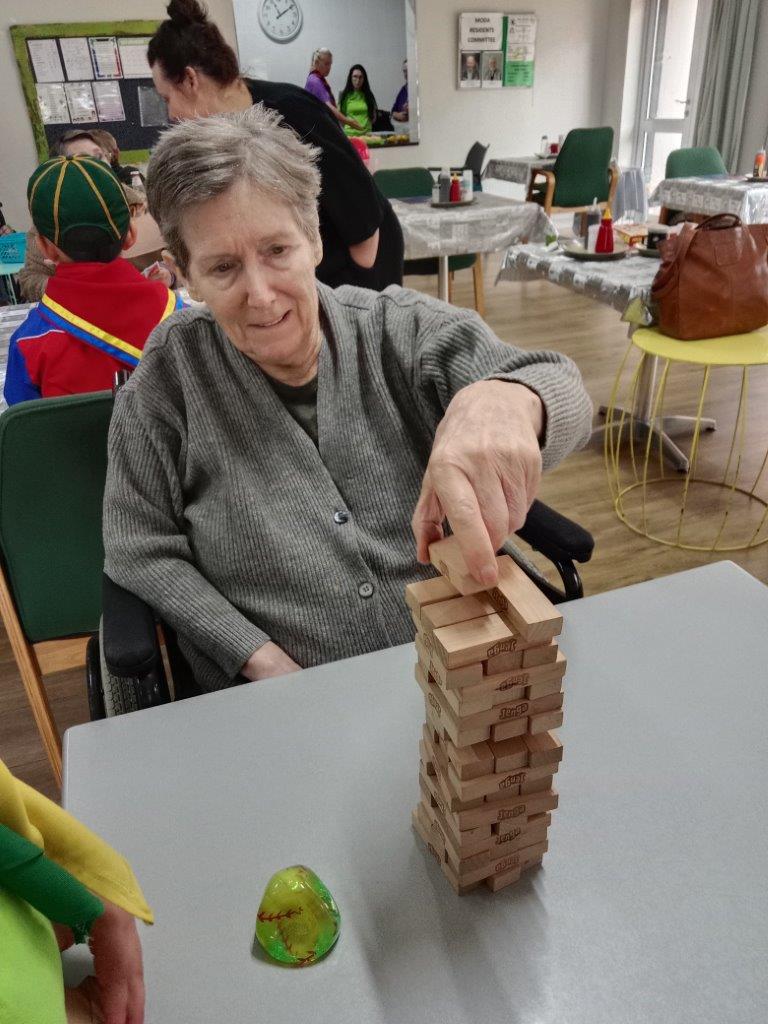 Residents and their young visitors posed happily for photographs before challenging each other to a variety of games, including cards, dominoes and Rummikub.