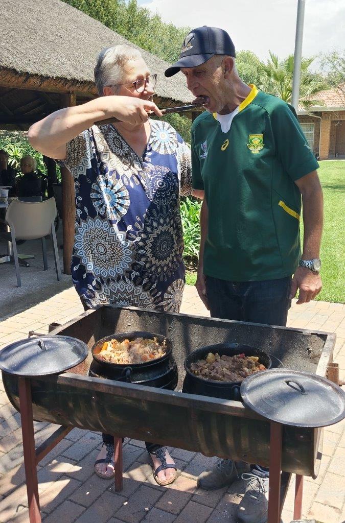 The menu featured two steaming pots of homemade potjiekos – one chicken and one beef – which proved a huge hit. “The residents loved the food and many went back for seconds and thirds,” said social worker Lara Swanepoel, whose husband Ryan prepared the meal.