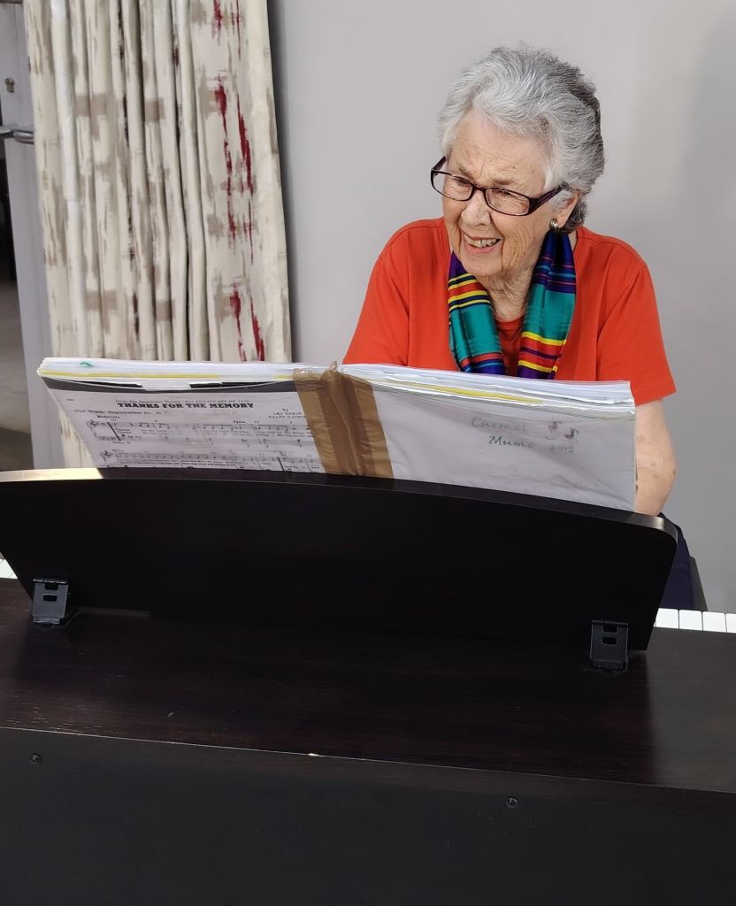 Fellow resident Carmel Borland, who regularly performs at village events, delighted guests with her piano performance.