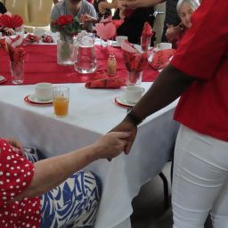 Following the Valentine’s sing-along – which brought together Rand Aid residents from Thornhill Manor, Thembalami Care Centre and the Max Ordman Deaf Association – a cake specially baked by Thembalami for the event was shared with the village staff as a heartfelt token of appreciation.